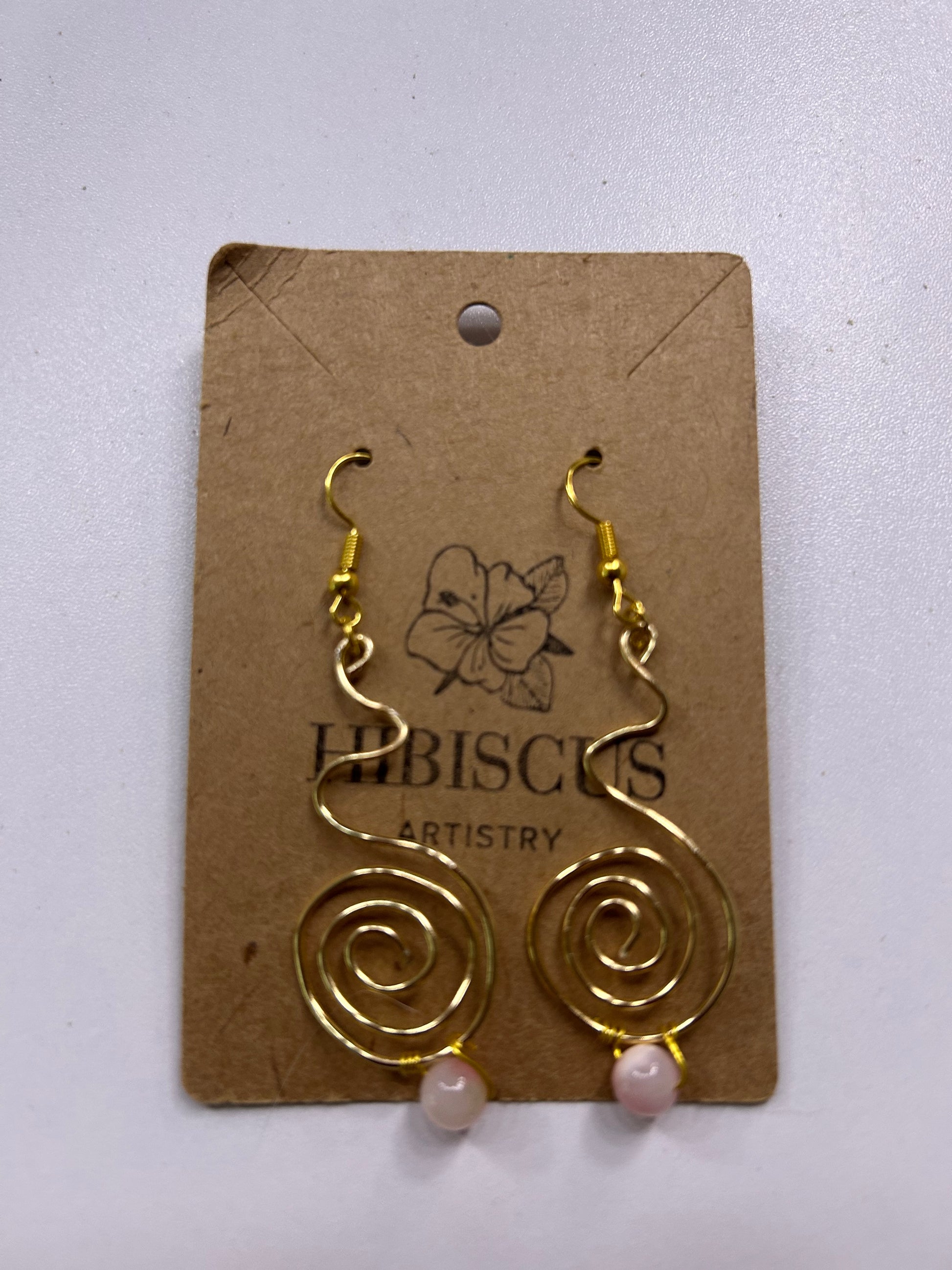 Gold Wire Spiral Earrings - Watermelon Quartz (Pink)