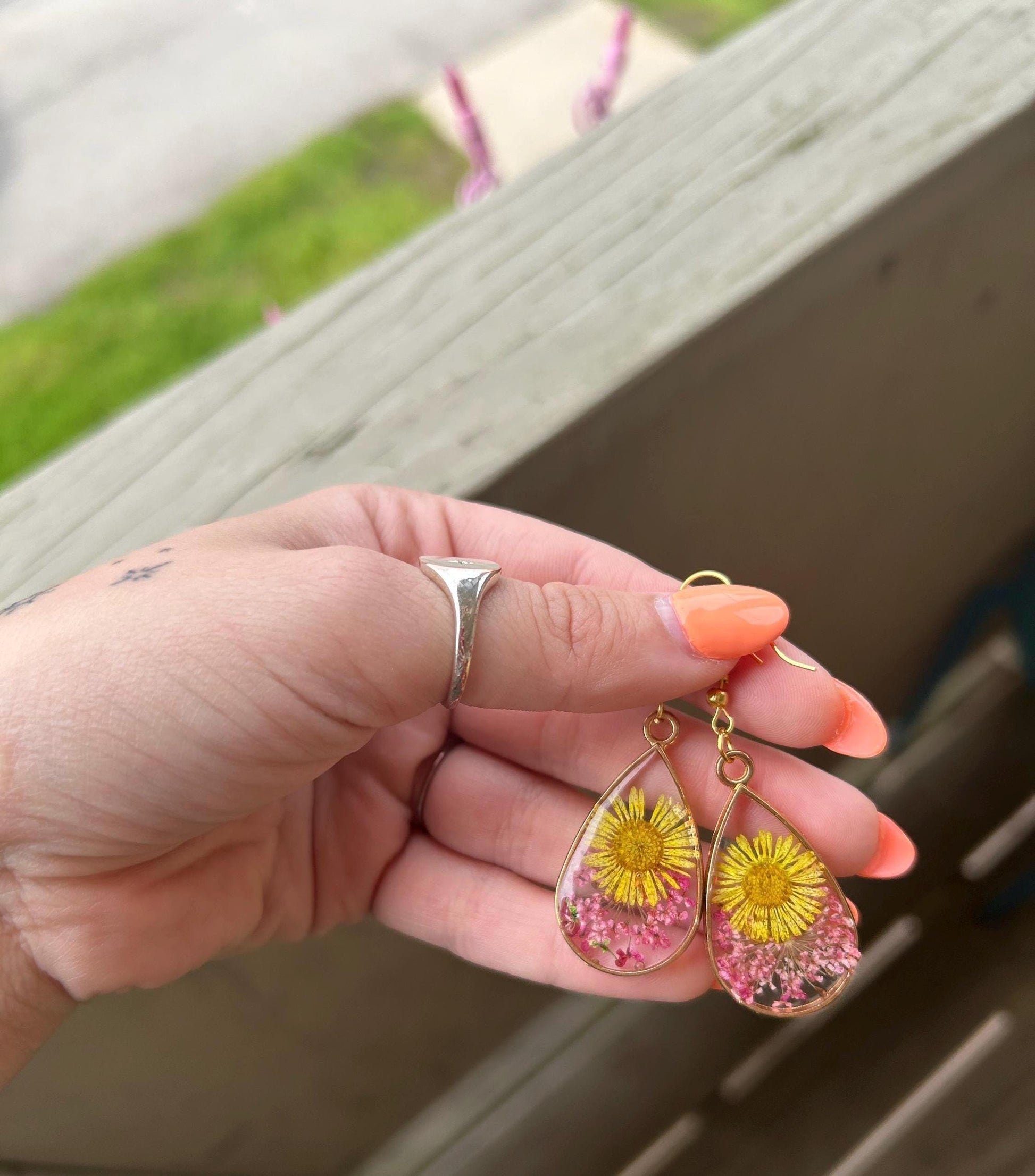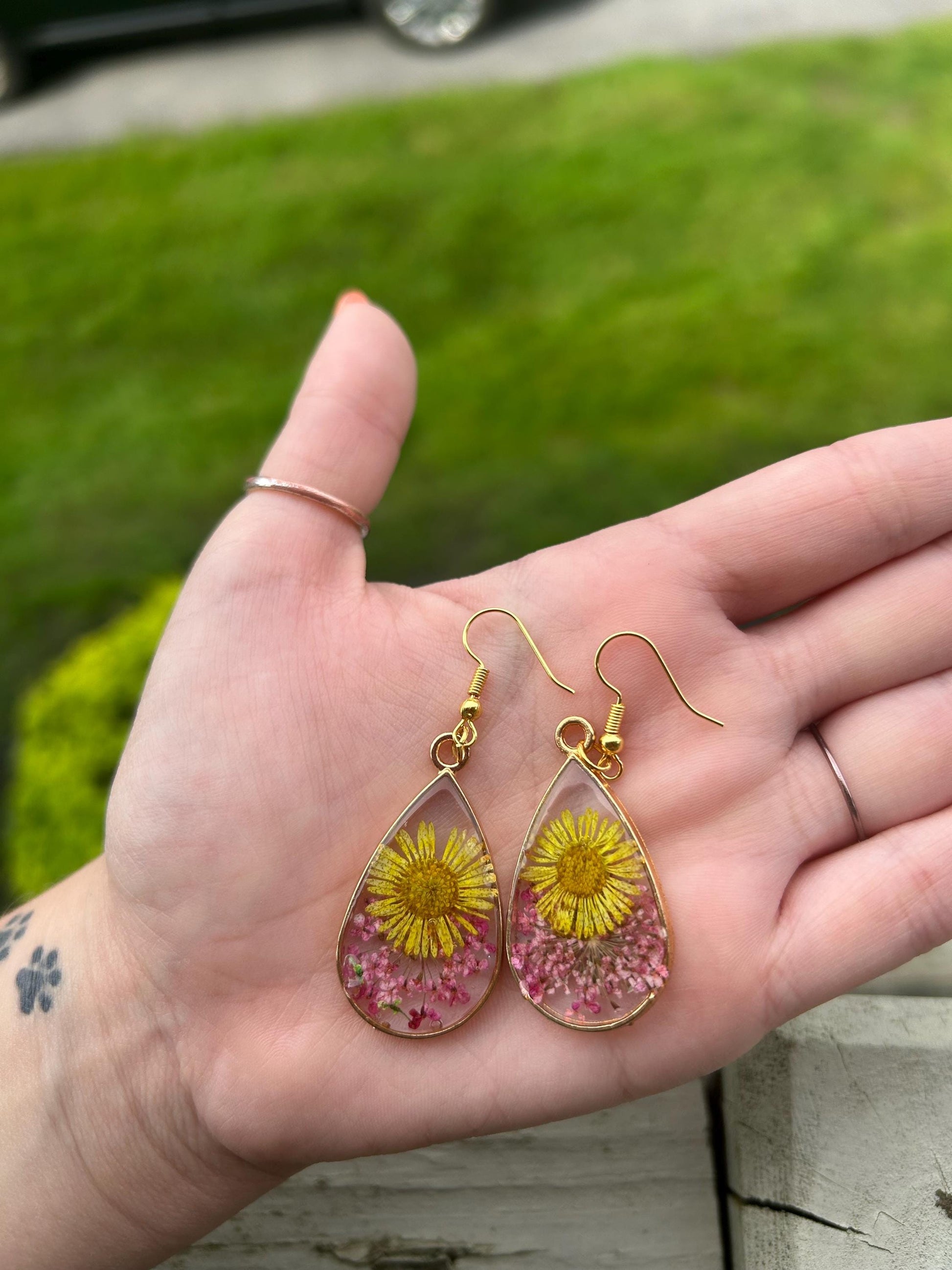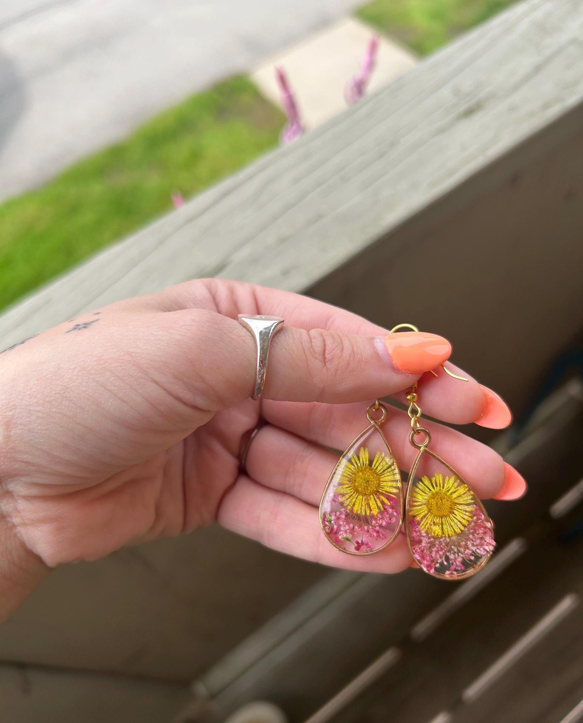 Resin earrings made with genuine yellow & pink florals 🌸